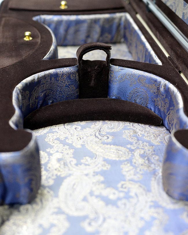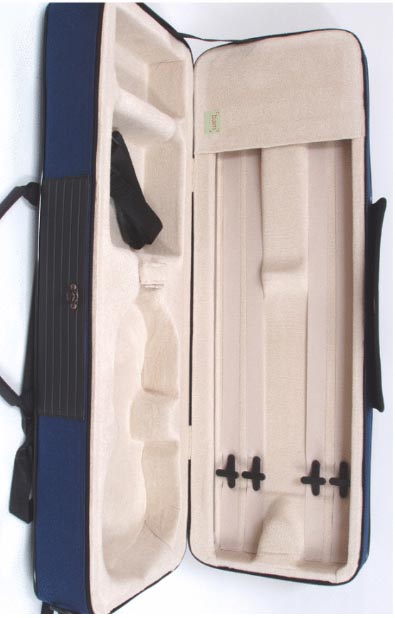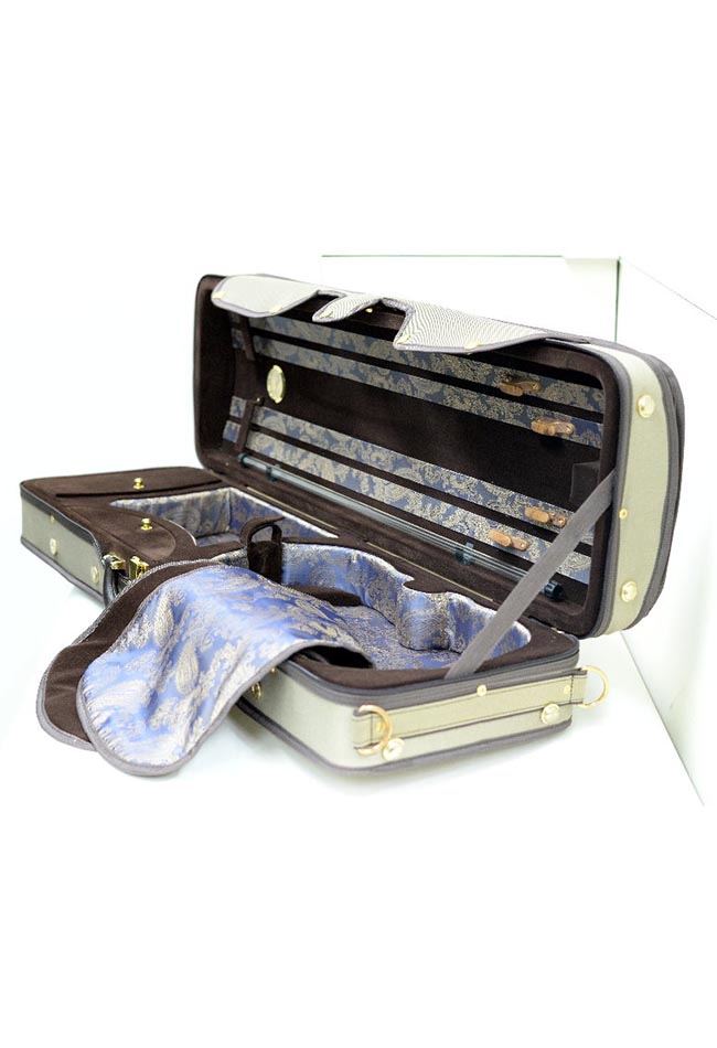 內(nèi)部:室內(nèi)裝飾用仿麂皮材料;定制以適合您的樂器;貝殼側(cè)面填充不同密度泡沫,使儀器的最大安全性;四個撐弓架;大型配件有藍(lán)色、紅色、淺灰色和綠色;筆記;重量值因研發(fā)過程而變化。