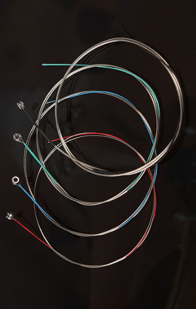 為了保證聲音,此弦A弦為鋁皮纏弦,看上去直徑較粗,也是最容易磨損的琴弦,E弦聲音比較敏感,但都不及鋼弦耐用。