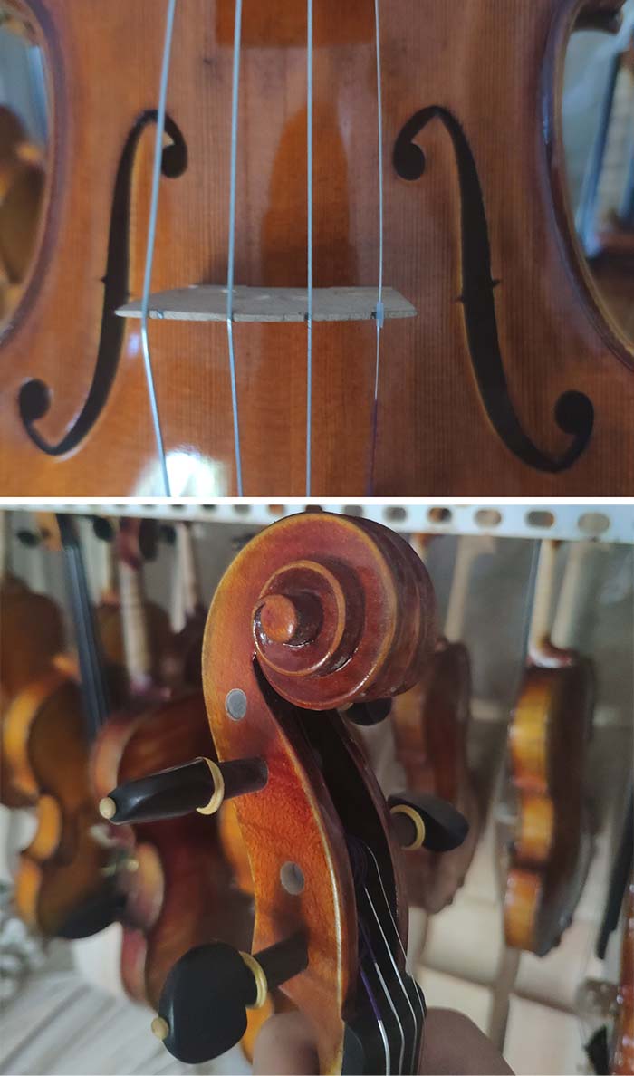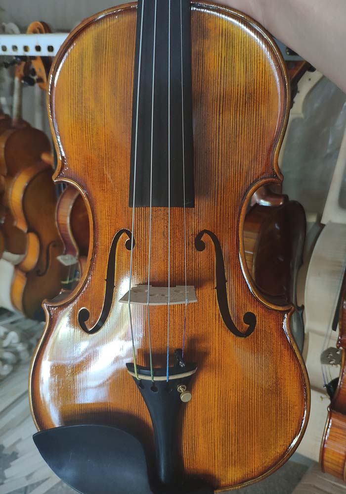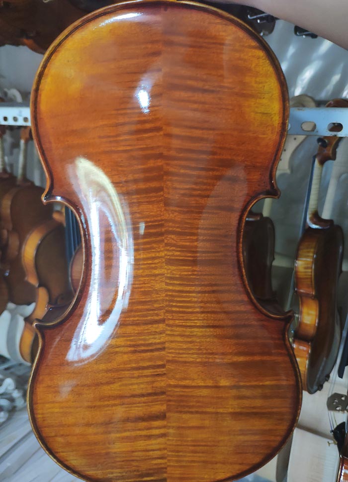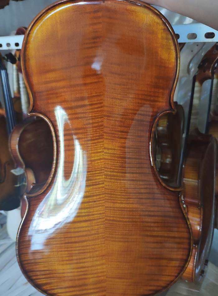 描述:這一批琴無論是從外形還是音質方面來說,都是非常棒的,尤其是共振,更是技高一籌,好像是自帶音響一箱,非常的響亮。這把琴的油漆風格個人非常的喜歡,仿就工藝也做的非常好,看上去像是很有內涵很有年份的琴。總之,這把琴無論是專業演奏,還是當作進階琴來用,都非常的合算,性價比高。